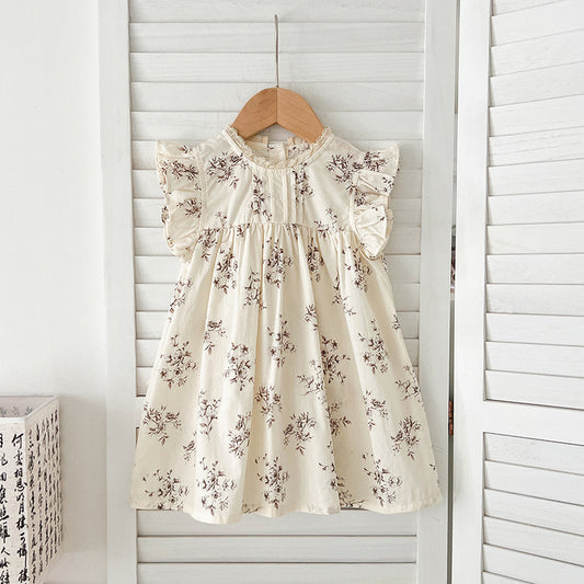 Conjunto de verano para niñas y bebés con estampado floral de enredaderas, sin mangas, cuello redondo y vestido para niñas: conjunto a juego de princesa y hermana