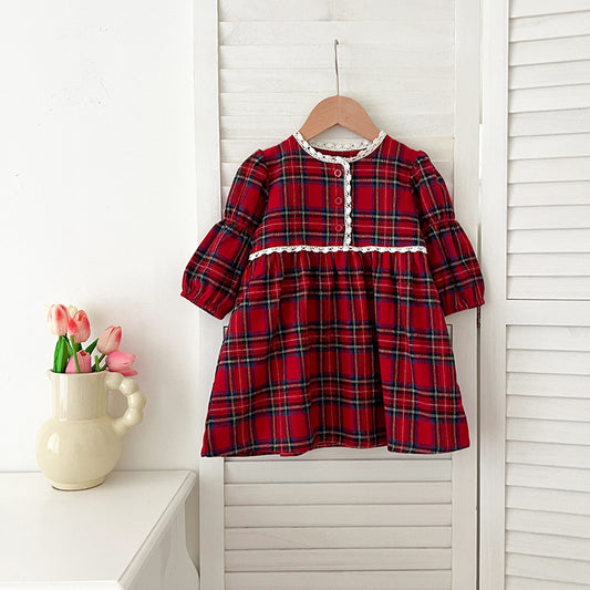 Conjunto de pijama y vestido con cuello con volantes para niñas pequeñas con cuadros ingleses vintage de otoño – Conjunto a juego para princesas y hermanas