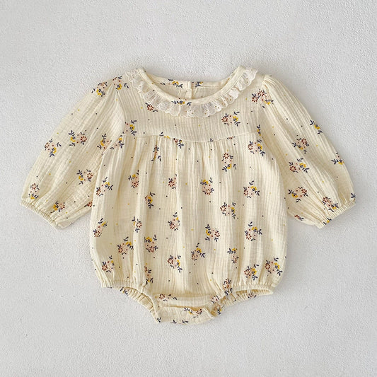 Autumn Baby Girls French Style Flowers Pattern Long-sleeved Onesies and Dress with Collar – Princess Sister Matching Set