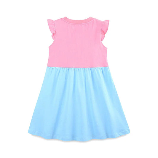 Summer Hot Selling Cute Unicorn Cartoon Pattern Fly Sleeves Color Patchwork Dress for Stylish Girls
