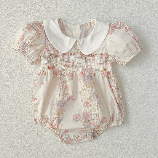 Recién llegado, mono y vestido con estampado floral de manga corta y cuello Peter Pan para niñas de verano: conjunto a juego de princesa y hermana