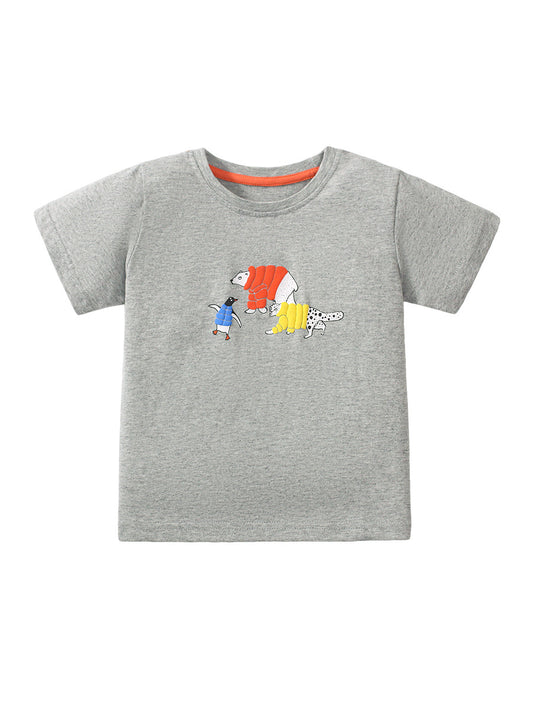 Camiseta unisex para niños con estampado de dibujos animados de animales polares en estilo europeo y americano para el verano