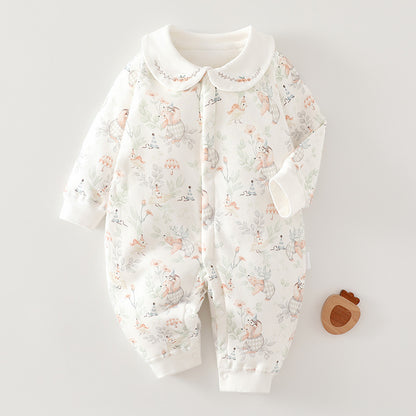 Peleles gruesos de manga larga con estampado de dibujos animados de animales para niñas recién nacidas en otoño e invierno.