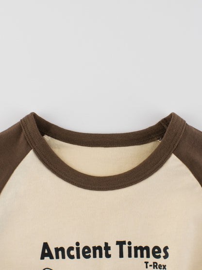 Camisa básica de cuello redondo y mangas largas con estampado de dinosaurios y letras de otoño para bebés y niños