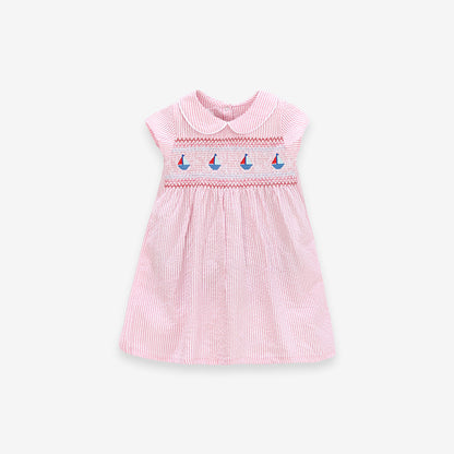 Vestido de rayas con estampado de velero sin mangas para niñas de verano