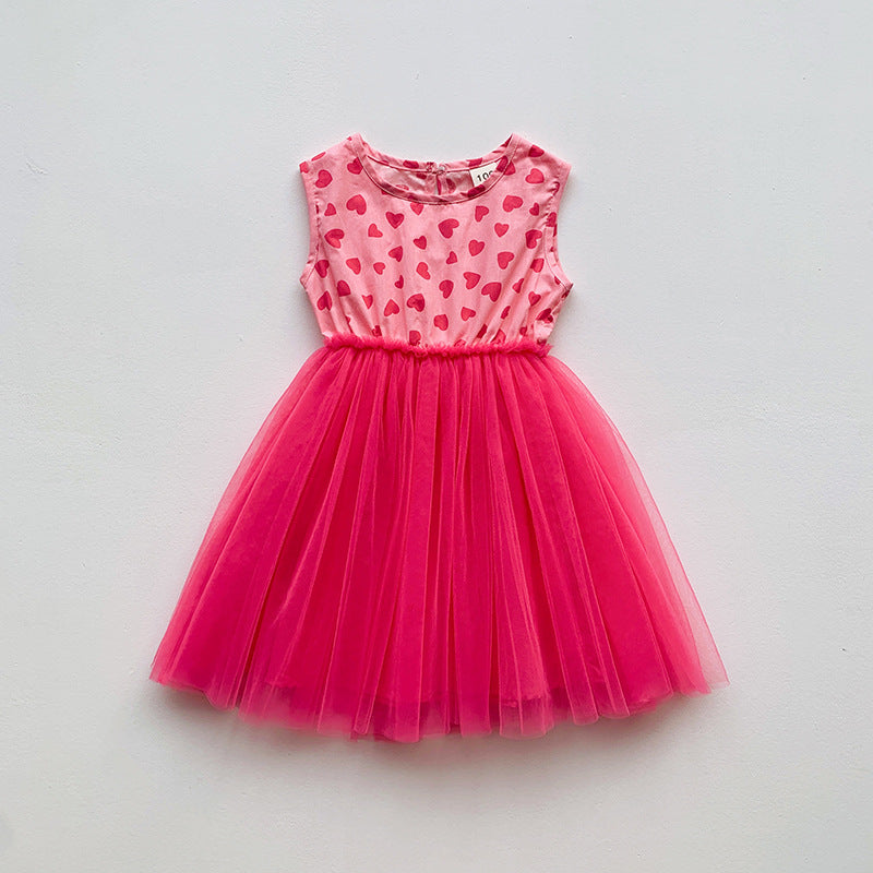 Vestido de verano para niñas y bebés, sin mangas, con diseño sencillo y retazos de malla