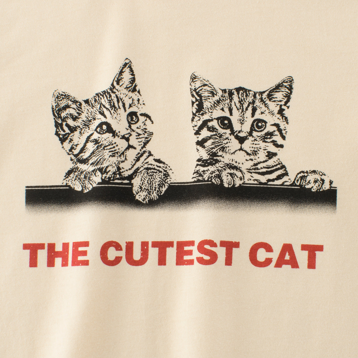 Camiseta de verano para niña con estampado de gatitos y letras en estilo europeo y americano.