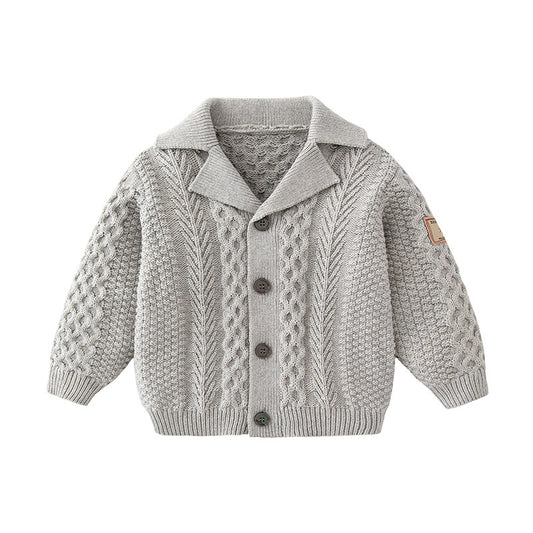 Cárdigan de punto de manga larga con patrón bordado de setas cómodo unisex para bebés y niños recién llegados de otoño