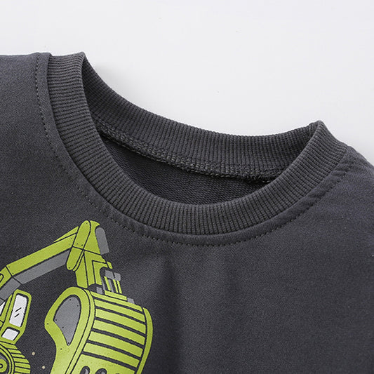 Sudaderas con capucha de algodón cómodas con estampado de excavadora para bebé niño