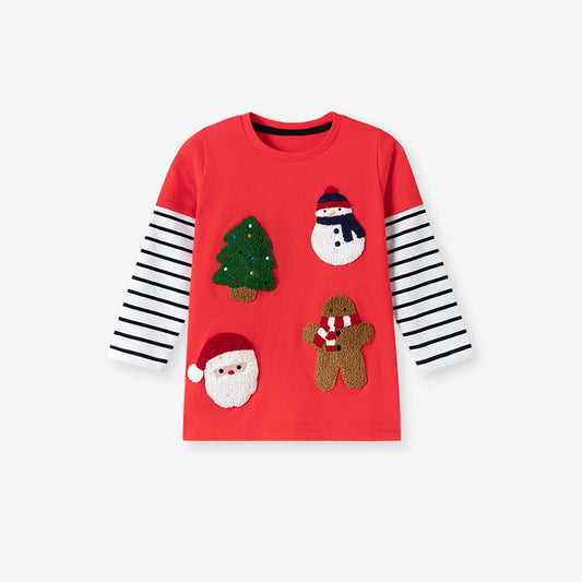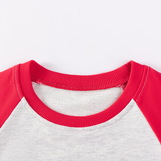 Spring and Autumn Boys Christmas Cartoon Pattern Long Sleeves Color Patchwork Sweatshirt and Pants Clothing Set