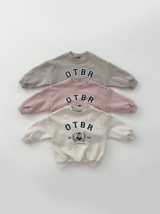 Conjunto de ropa unisex de primavera y otoño para niños, con logo de osito de peluche, manga larga, jersey y pantalones