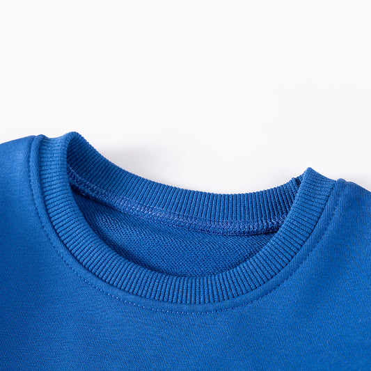 Spring and Autumn Boys Christmas Cartoon Pattern Long Sleeves Crew Neck Top Sweatshirt and Plain Pants Clothing Set
