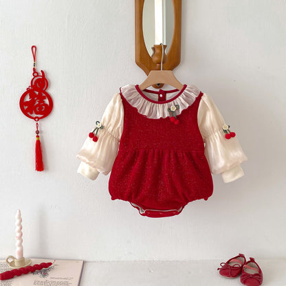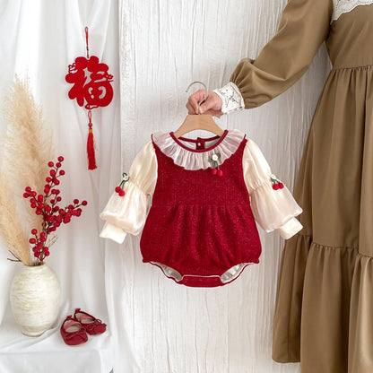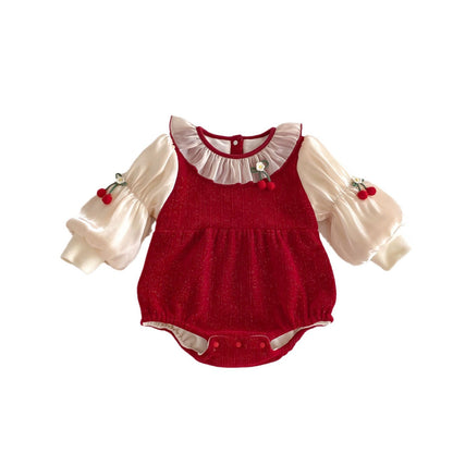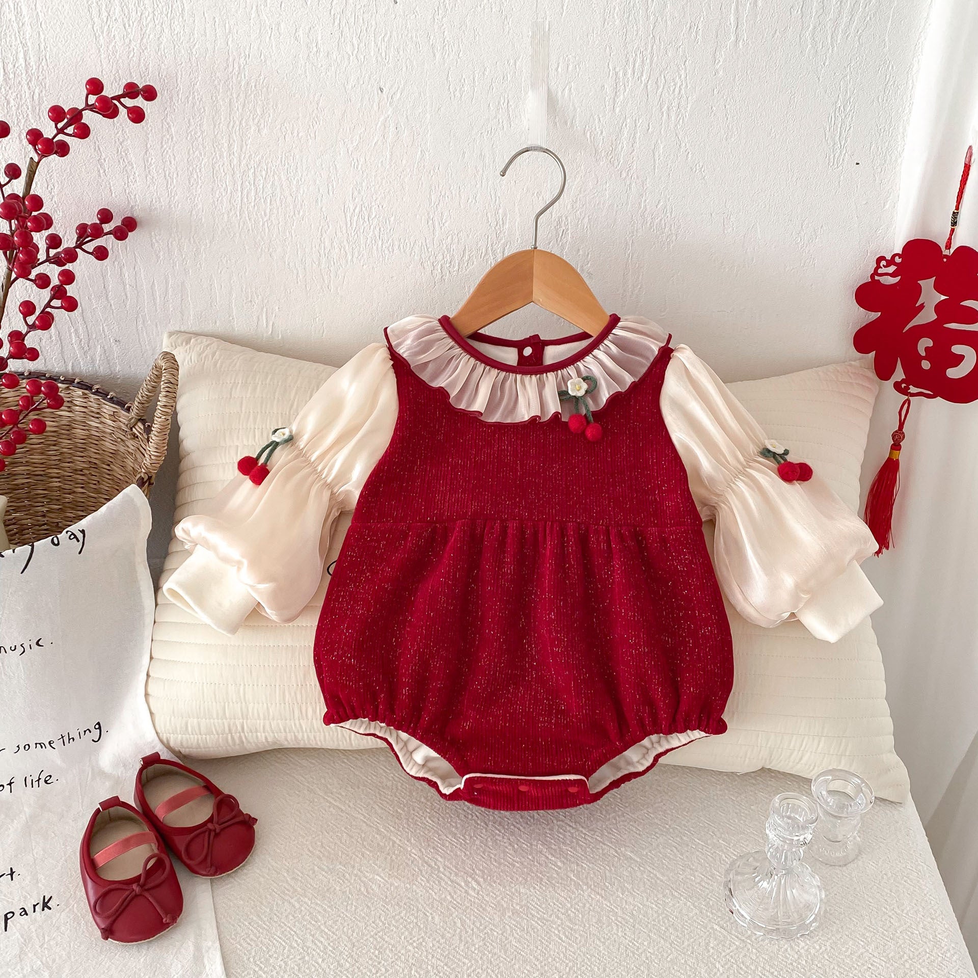 Body de manga larga con diseño de cerezas para niñas recién nacidas en invierno
