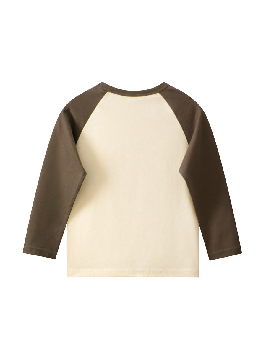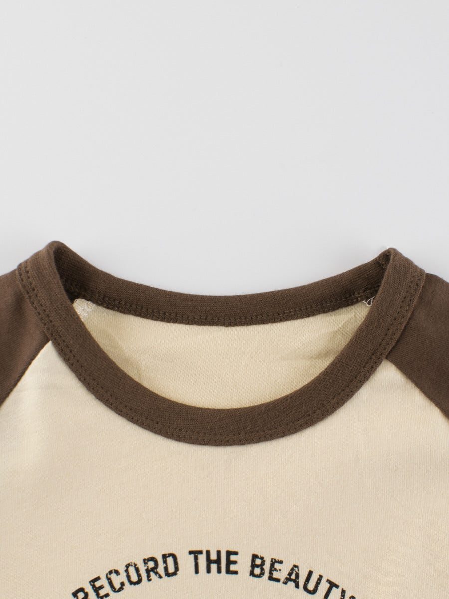 Camisa básica de cuello redondo y mangas largas con estampado de letras y retazos de colores para bebés de otoño