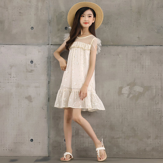 Summer Hot Selling Baby Kids Girls Sleeveless Hollow Out Collar Princess Dress