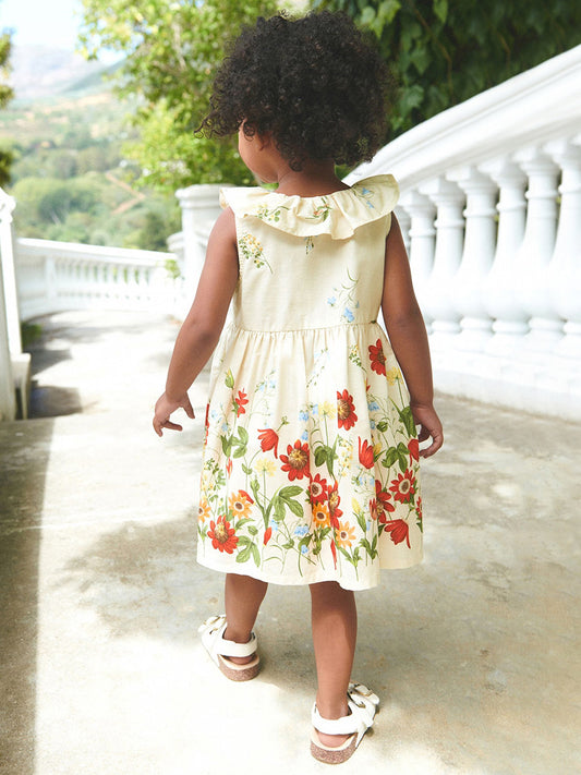 Summer Baby Girls Sleeveless Floral Pattern Single Breasted Dress
