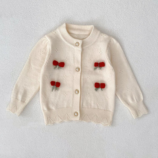 Autumn Arrival Baby Girls Comfortable Butterfly-bow Decorated Knitted Long Sleeves Cardigan