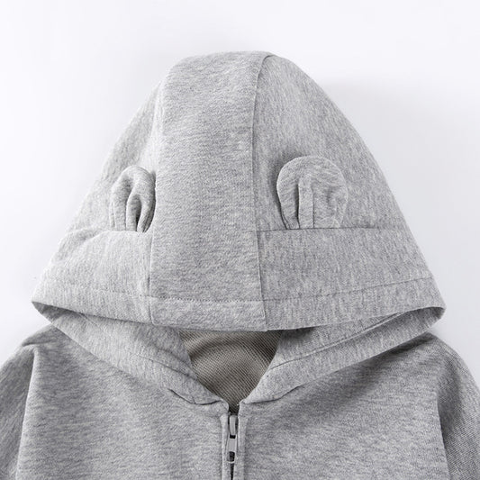 Winter and Autumn Girls Animals Cartoon Pattern Long Sleeves Zip-up Hooded Coat