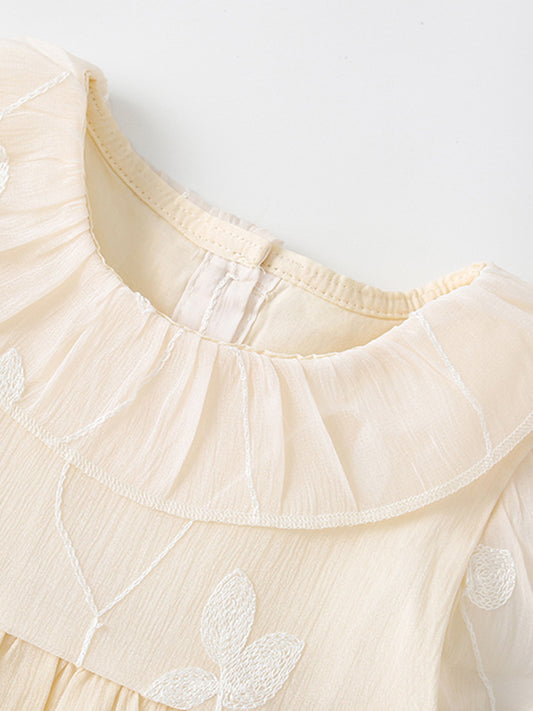 Summer Arrival Girls’ Leaves And Vine Pattern Embroidery Short Sleeves Round Collar Dress