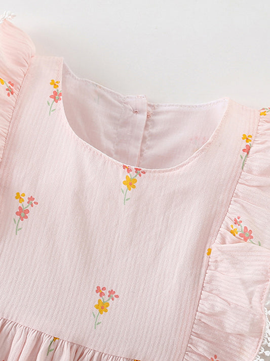 Summer Arrival Baby Kids Girls Fly Sleeves Floral Print Crew Neck Dress