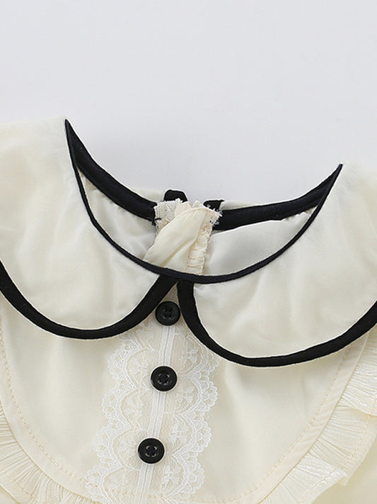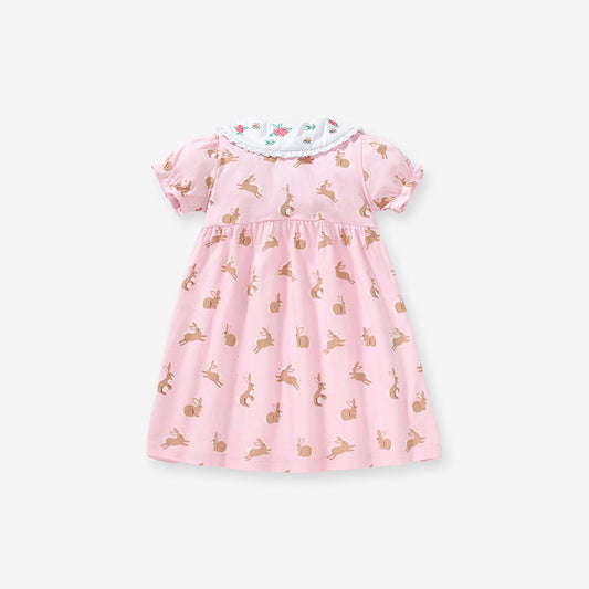Baby Girls Peter Pan Floral Collar Short Sleeves Rabbits Pattern Dress