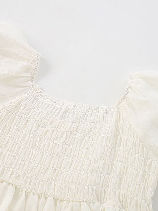 Summer Arrival Baby Kids Girls Short Sleeves Square Neck Dress