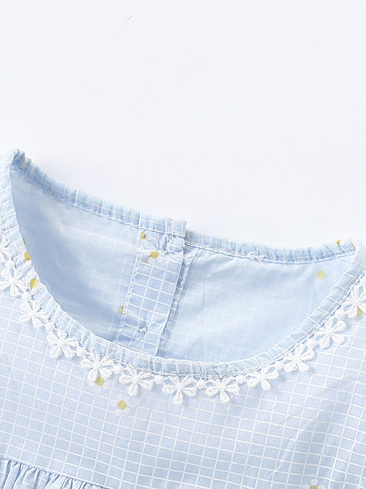Summer Arrival Girls’ Simple Plaid Short Sleeves Light Blue Dress