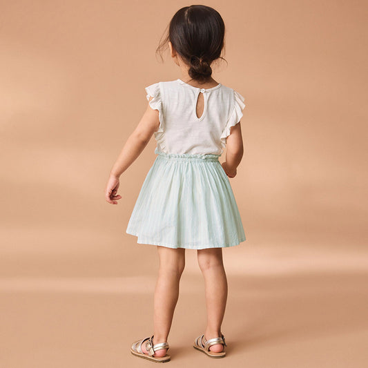Summer Arrival Cartoon and Stripe Pattern Fly Sleeves Dress for Stylish Girls