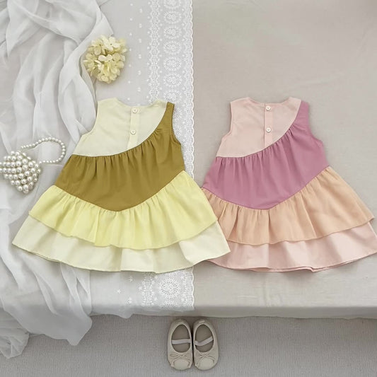 Summer Arrival Color Patchwork Crew Neck Sleeveless Dress for Stylish Girls