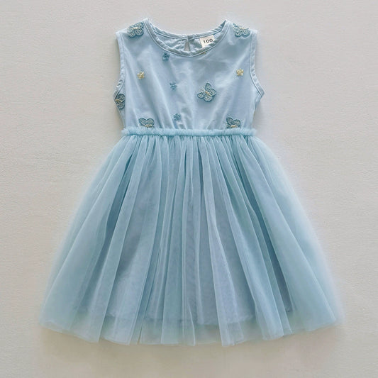 Summer Arrival Butterfly Pattern Embroidered Sleeveless Dress for Stylish Girls