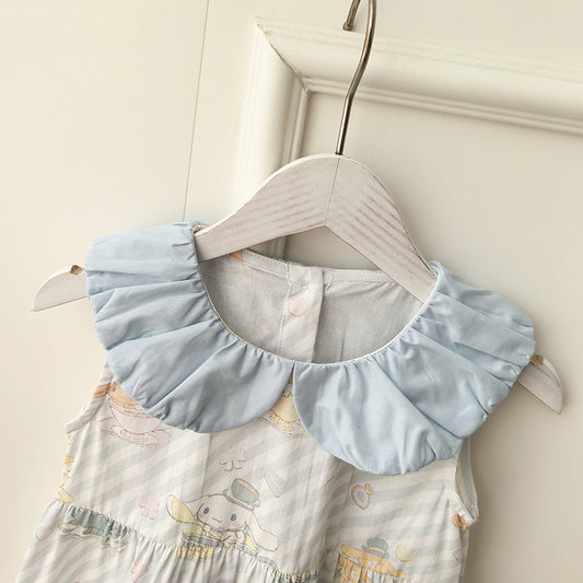 Summer Arrival Puppy Cartoon Pattern Printed Sleeveless Dress for Stylish Girls