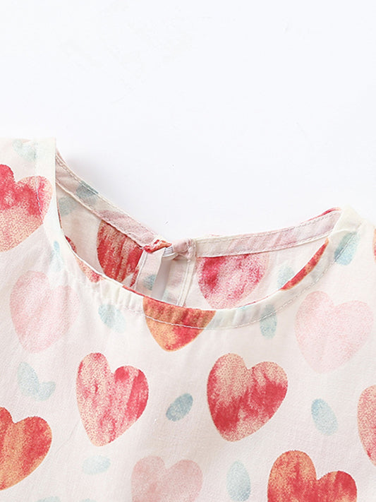 Summer Arrival Girls Short Sleeves Red Heart Print Dress