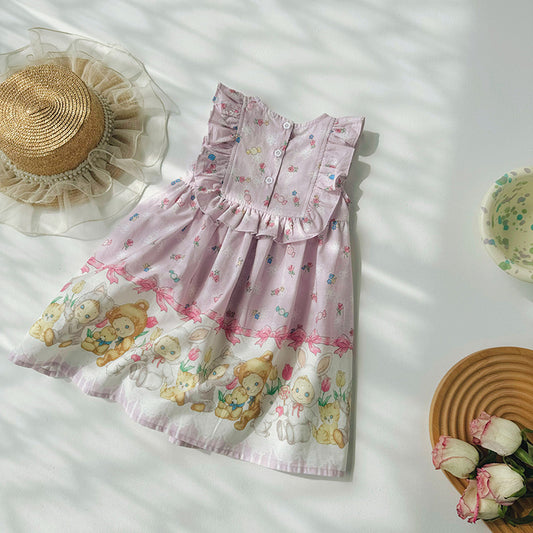 Summer Kids Girls Cute Baby Print Sleeveless Design Princess Dress