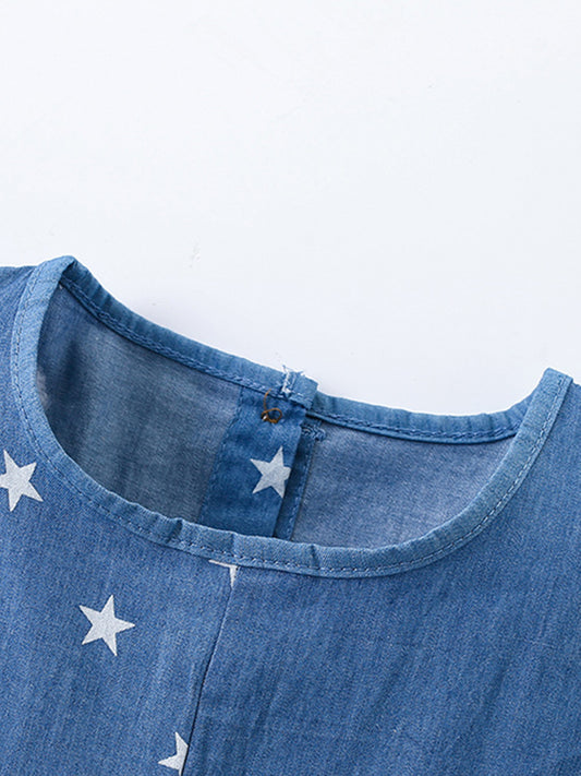 Summer Arrival Girls’ Stars Pattern Patchwork Short Sleeves Crew Neck Dress