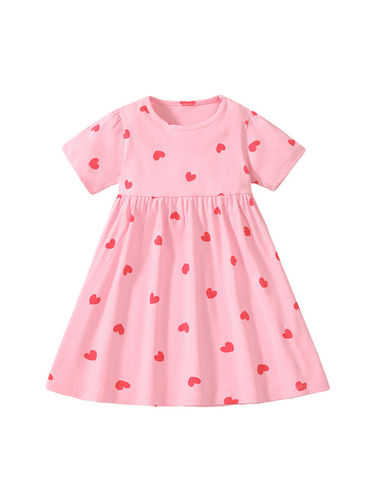 Summer Arrival Girls’ Heart Pattern Short Sleeves Crew Neck Dress