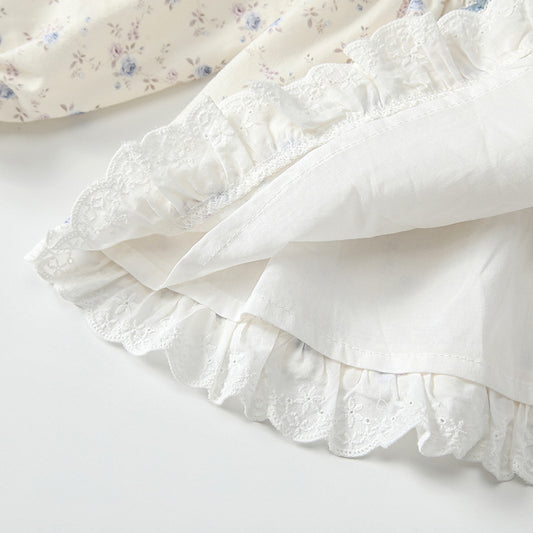 Baby Girls Flowers Pattern Long-sleeved Onesies and Dress – Princess Sister Matching Set with Collar
