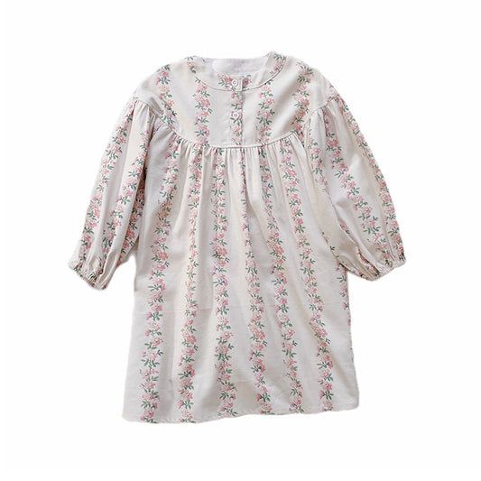Arrival Girls Autumn French Floral Pattern Long Sleeves Dress