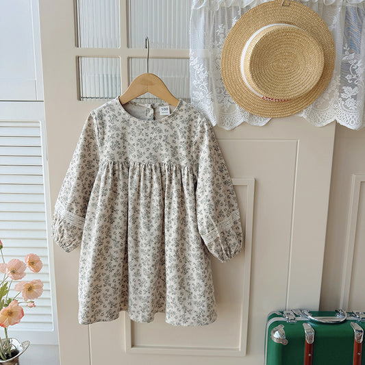 Autumn Arrival Baby Kids Girls French Style Floral Pattern Long Sleeves Dress