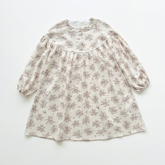 Arrival Autumn Baby Kids Girls Floral Print Long Sleeves Beige Dress