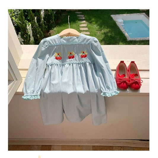 Autumn Arrival Baby Kids Girls Cherry Embroidered Pattern Long Sleeves Dress