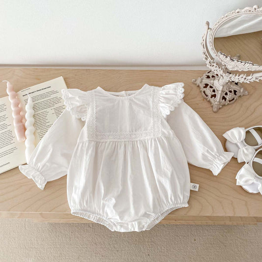 Spring Baby White Embroidery Lace Mesh Princess Onesie Dress For Girls