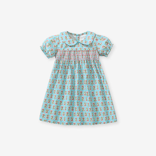 Baby Kids Girls Peter Pan Collar Floral Design Short Sleeves Dress