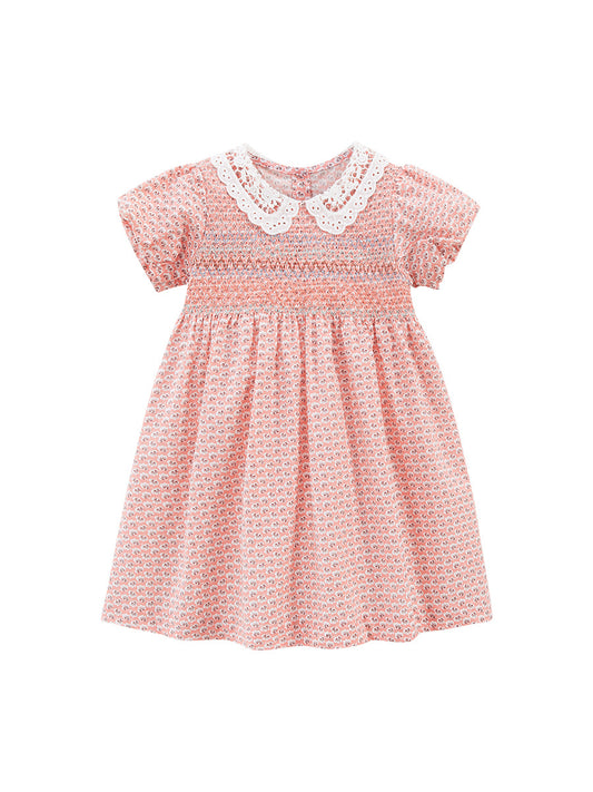 Summer Baby Kids Girls Short Sleeves Lace Collar Print Dress