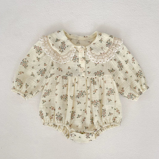 Autumn Baby Girls Flowers Pattern Long-sleeved Onesies and Dress – Princess Sister Matching Set with Collar