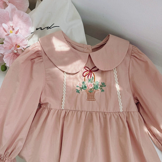 Autumn Baby Girls Floral Embroidery Pattern Long-sleeved Onesies and Dress – Princess Sister Matching Set
