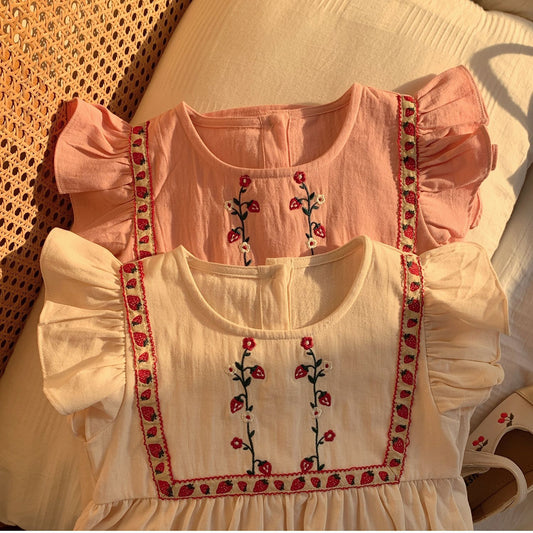 Summer Arrival Baby Kids Girls Cute Short Sleeves Flowers Pattern Embroidered Dress