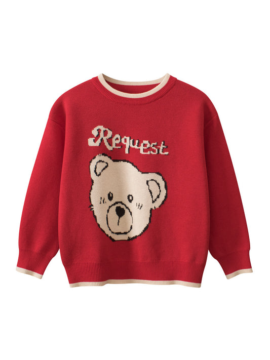 Autumn Arrival Baby Girls Kids Cute Teddy Bear Pattern Crew Neck Long Sleeves Knitted Sweatshirt Pullover