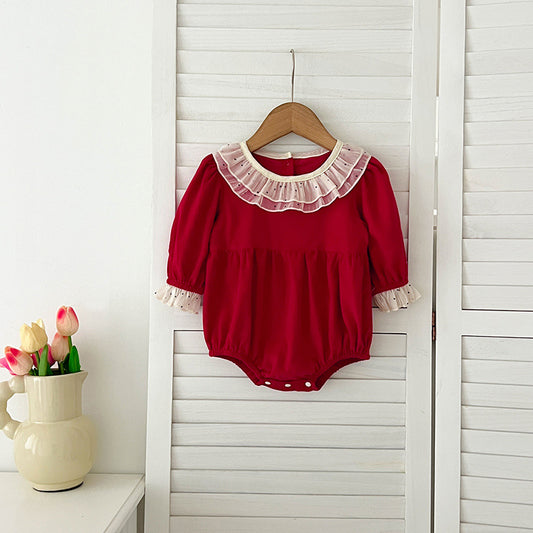 Arrival Autumn Baby Kids Girls Dots Pattern Collar Long Sleeves Onesies and Dress – Princess Sister Matching Set