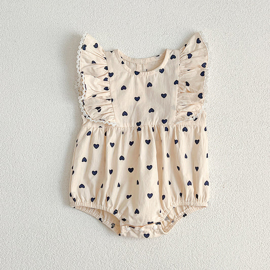 Arrival Summer Baby Kids Girls Heart Pattern Sleeveless Crew Neck Onesies And Girls’ Dress – Princess Sister Matching Set