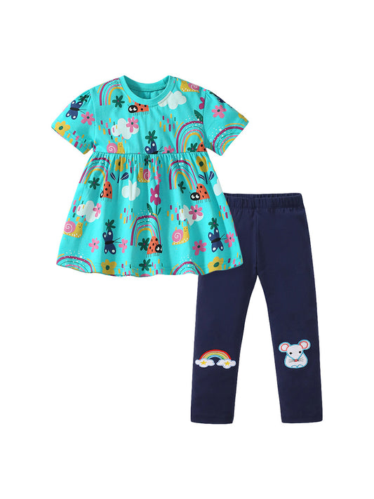 Summer Baby Kids Girls Cartoon Print Dress And Pants Clothing Set